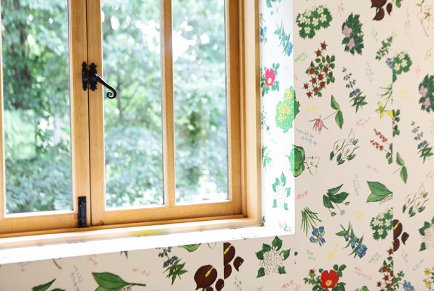 菓子メーカー〈六花亭〉の包装紙として親しまれている絵柄です。六花亭の〈六花の森工場〉の敷地には、