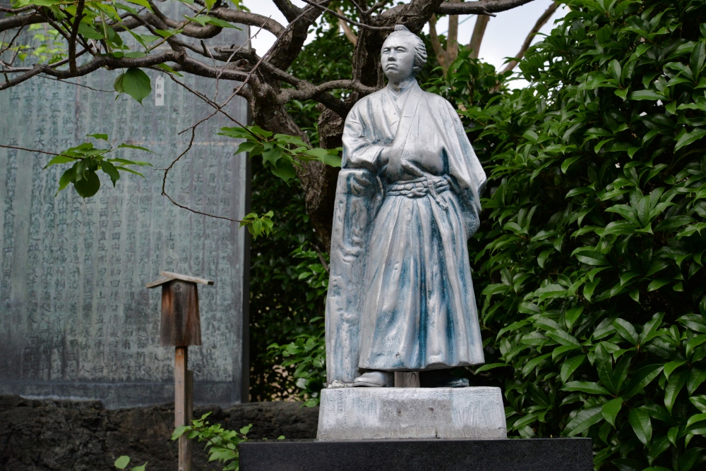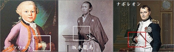 このとき龍馬は手を切られました。その傷の湯治に薩摩の霧島温泉にお龍と出かけて、それが日本最初の新婚旅行と言われています。龍馬はその刀傷で左手の人差し指が不自由になってしまい、そのため、写真を撮るときには左手を隠しているとか。確かに、写真や銅像で手が見えないポーズ。